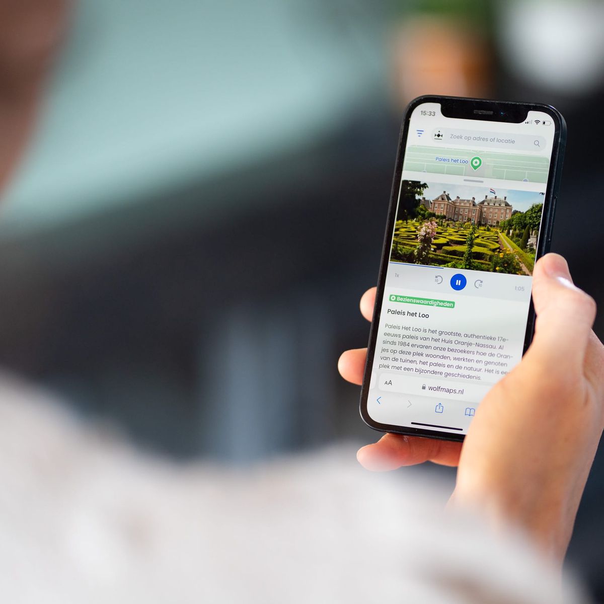 In Wolf Maps kun je gemakkelijk audio uploaden en toevoegen aan de verschillende plekken op de kaart. Daarbij kan de bezoeker makkelijk voor- en achteruit spoelen of het afspelen versnellen.