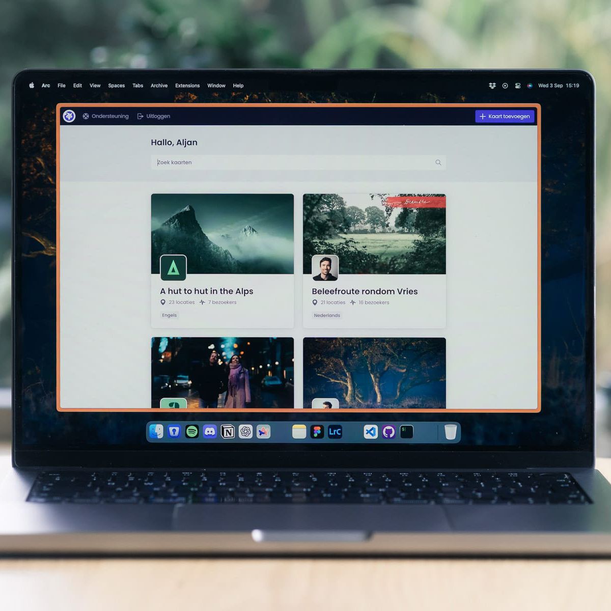 Je kunt dan nog steeds vanuit je hoofdkaart naar deze route verwijzen. Maar je geeft de gebruiker de ruimte om echt ín de ervaring te stappen. Denk aan een podwalk, een beleefroute of een erfgoedwandeling: dat soort routes vragen om hun eigen aandacht.