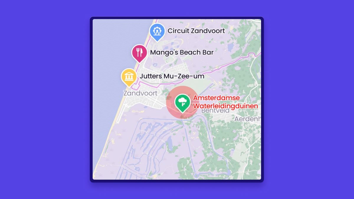 Vroegâh, als je op een pin op de kaart klikte, opende er een popup. Dat zag er best aardig uit, maar deze popup had zijn beperkingen. Hoe meer content in de popup, hoe groter de kans dat deze niet volledig in het scherm past. Hoe kunnen we dit verbeteren? We zijn naar de tekentafel gegaan.