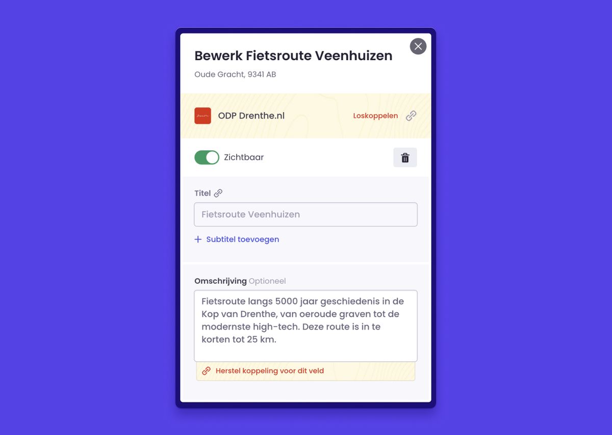 In addition to interconnections, you can now also create a link with Open Data Platforms. This allows for better collaboration among providers, for instance if you’re creating a map for the same province or region, or targeting the same audience. With such a connection, you can add existing locations to your map with the press of a button.